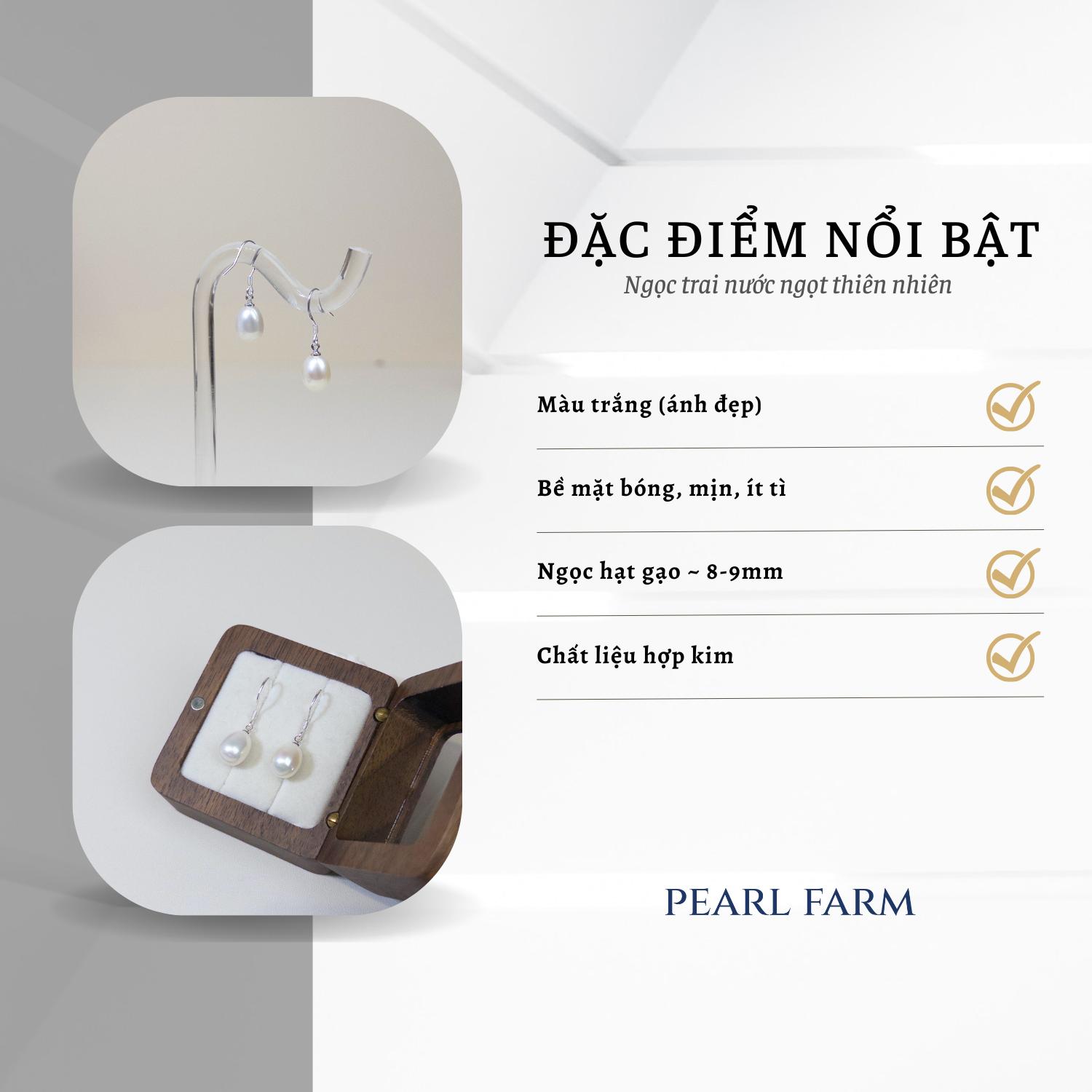 Bông Tai Ngọc Trai Móc Tai Dáng Hạt Gạo 8-9mm Hợp Kim Pearl Farm