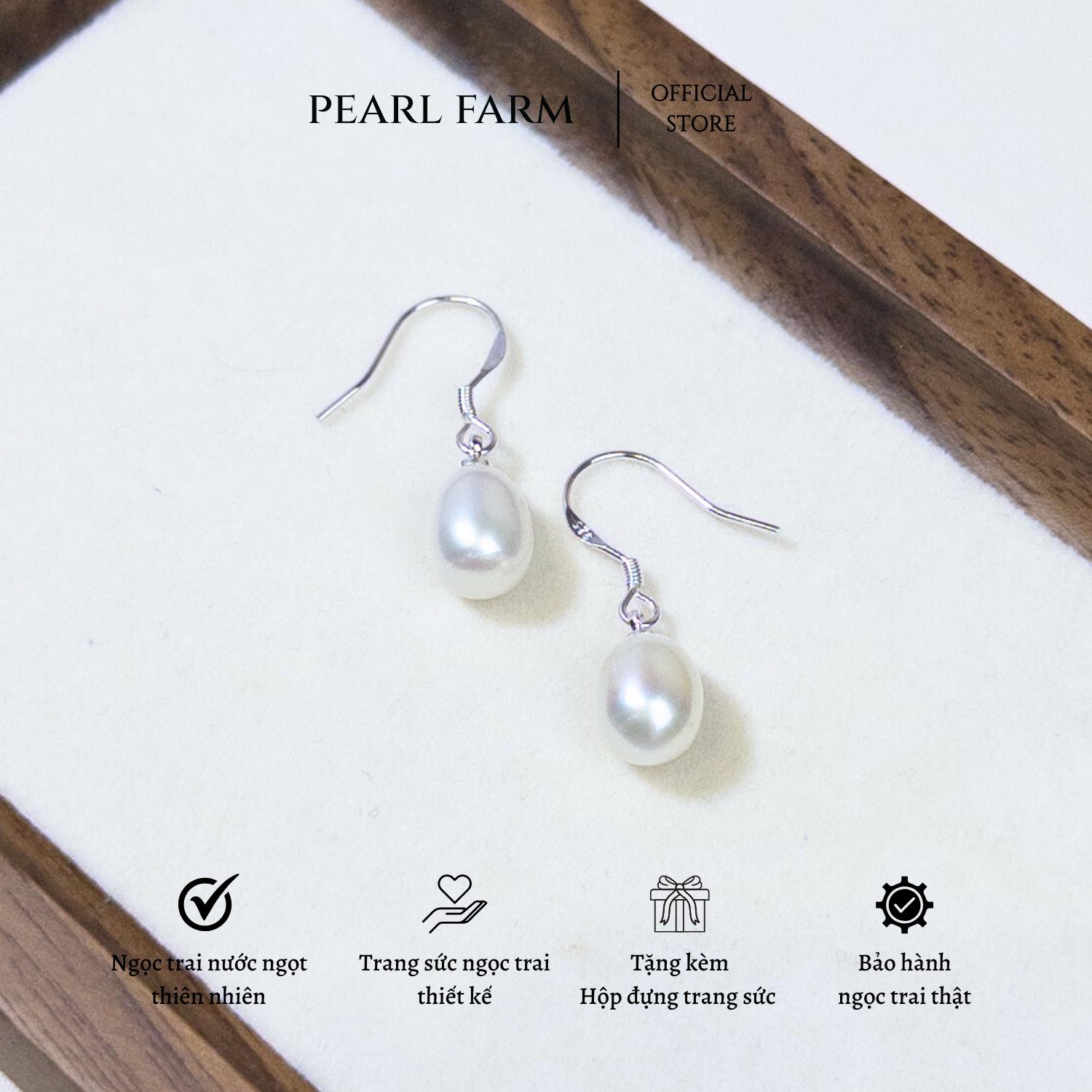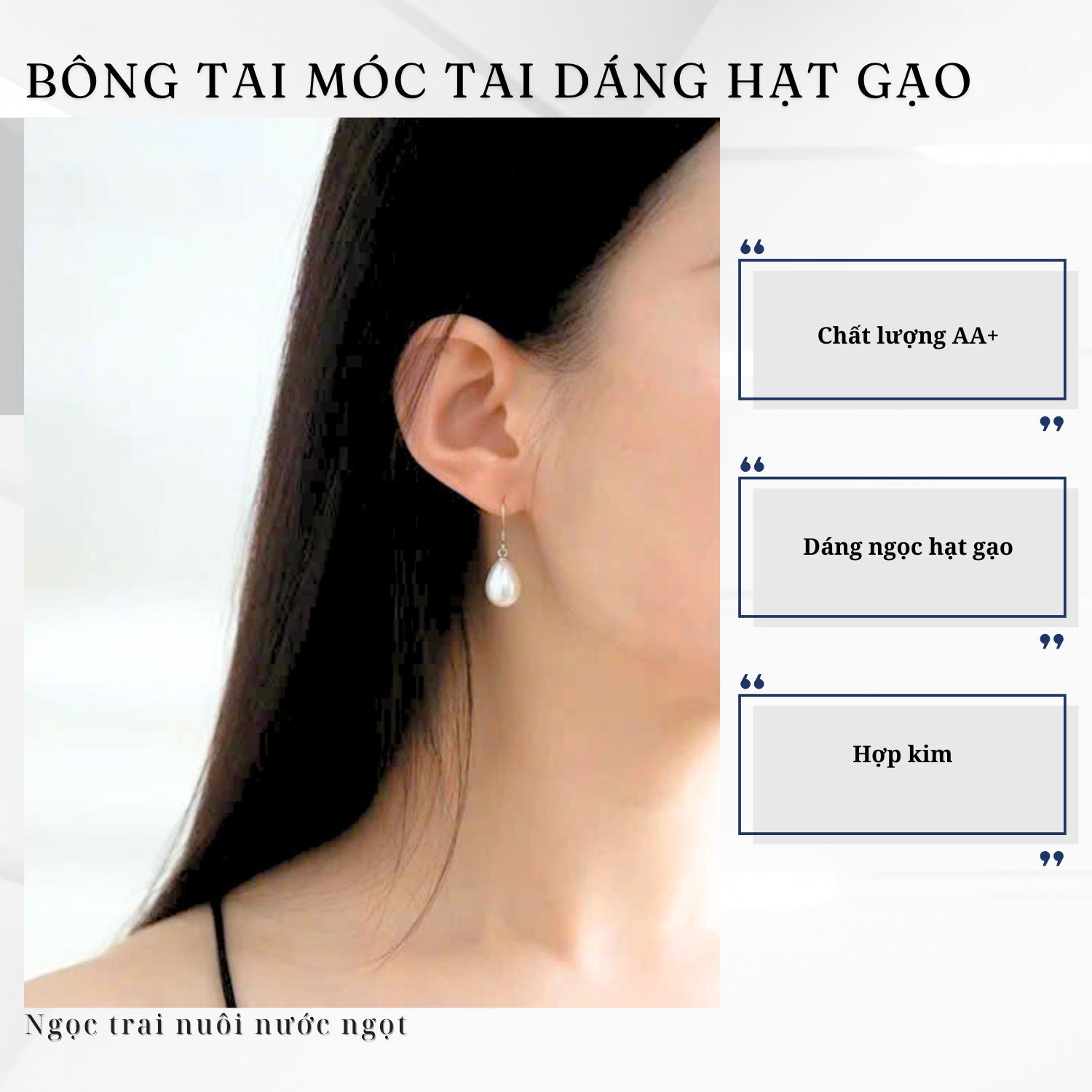 Bông Tai Ngọc Trai Móc Tai Dáng Hạt Gạo 8-9mm Hợp Kim Pearl Farm