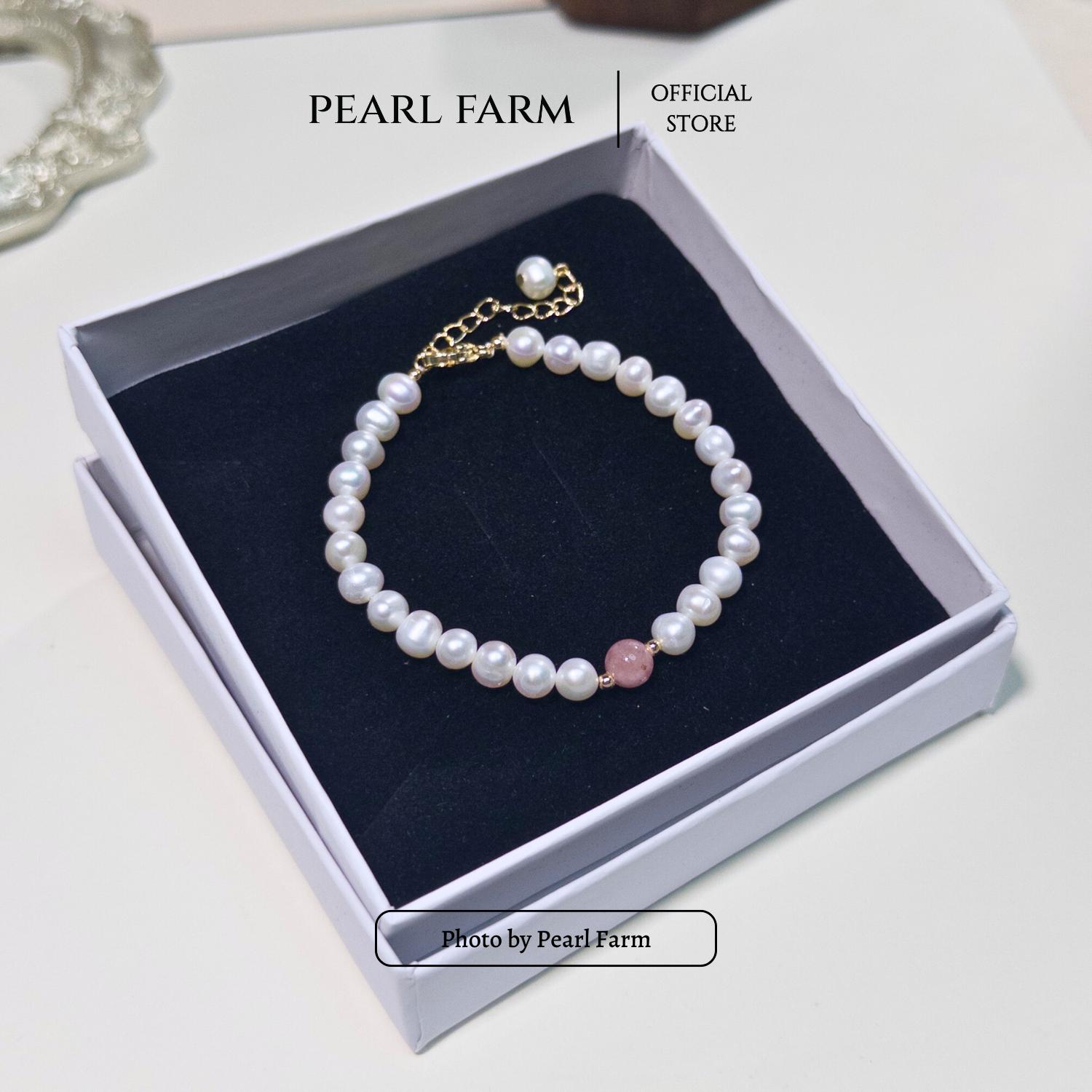 - Chất Liệu: Lắc tay được làm từ ngọc trai 5-6mm và đá thạch anh hồng. 🌟