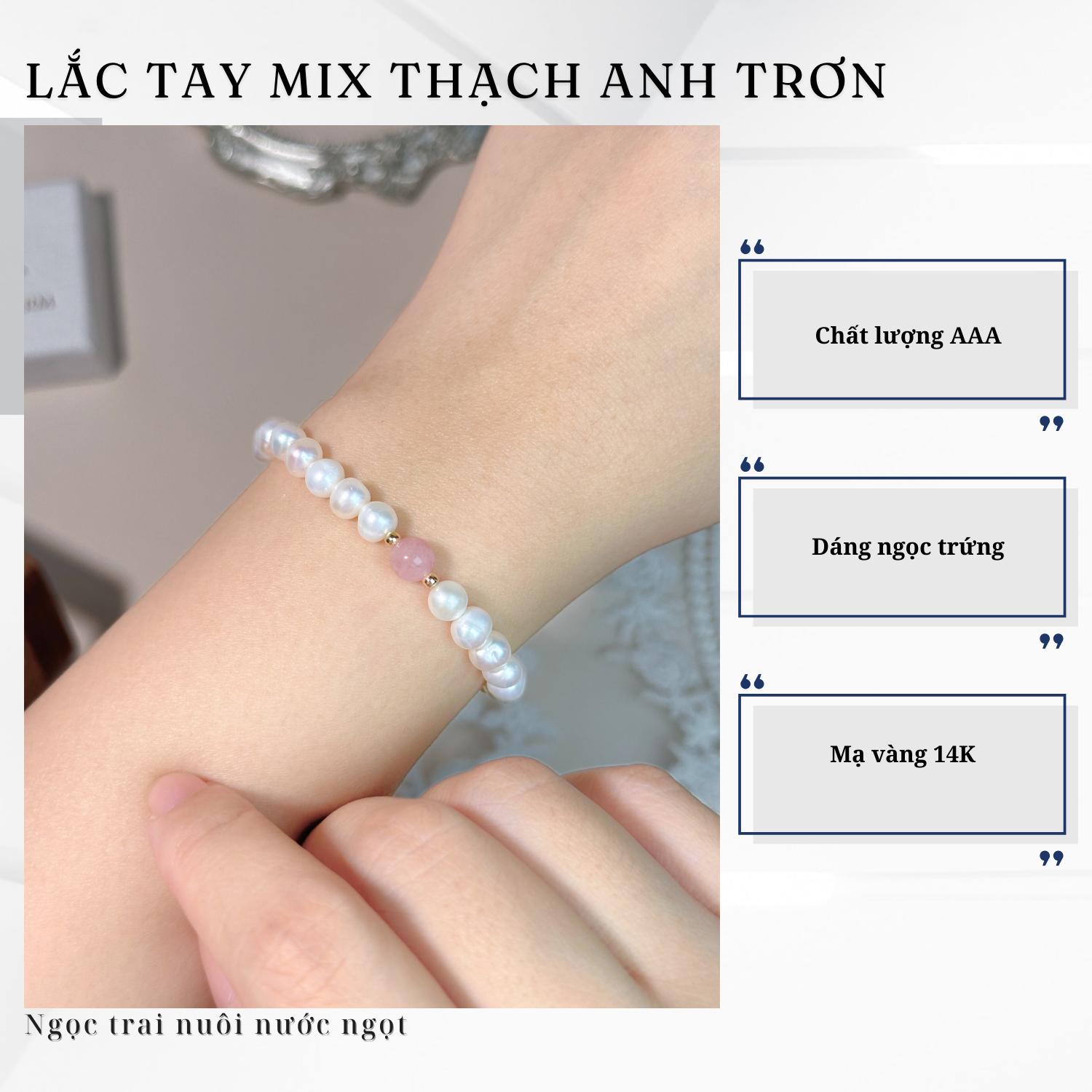 ✨ Tên Sản Phẩm: Lắc Tay Ngọc Trai 5-6mm Ít Tì Mix Đá Thạch Anh Hồng TRƠN Cổ Điển Sang Trọng