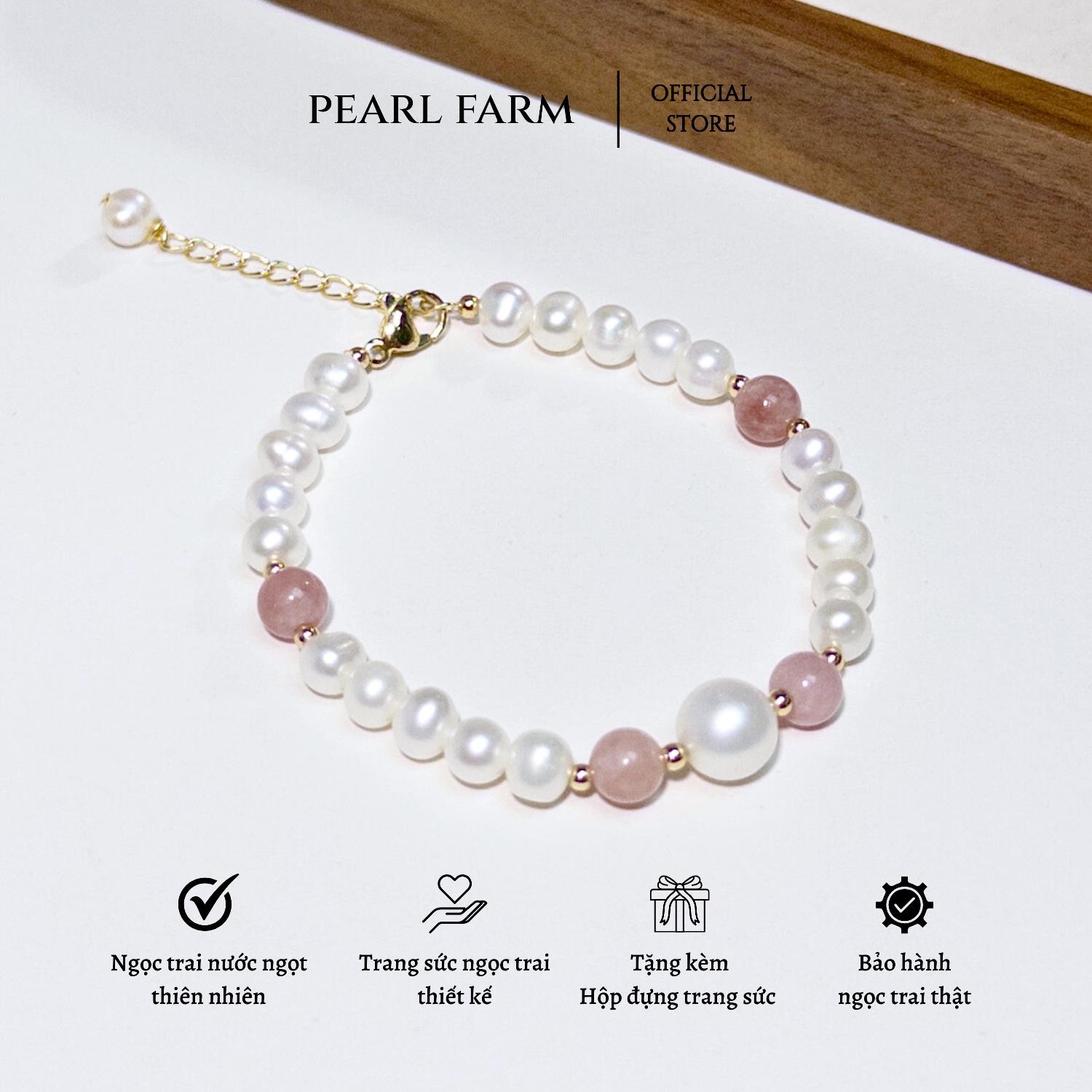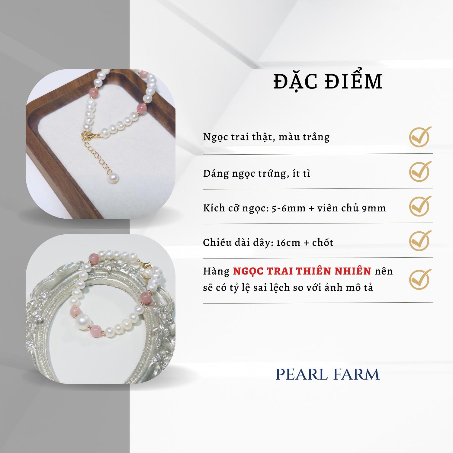 - Lắc tay này kết hợp giữa ngọc trai và đá thạch anh hồng. Viên chủ có kích thước 9mm, hình oval. Thiết kế ít tì, tạo nên vẻ đẹp tinh tế và sang trọng.