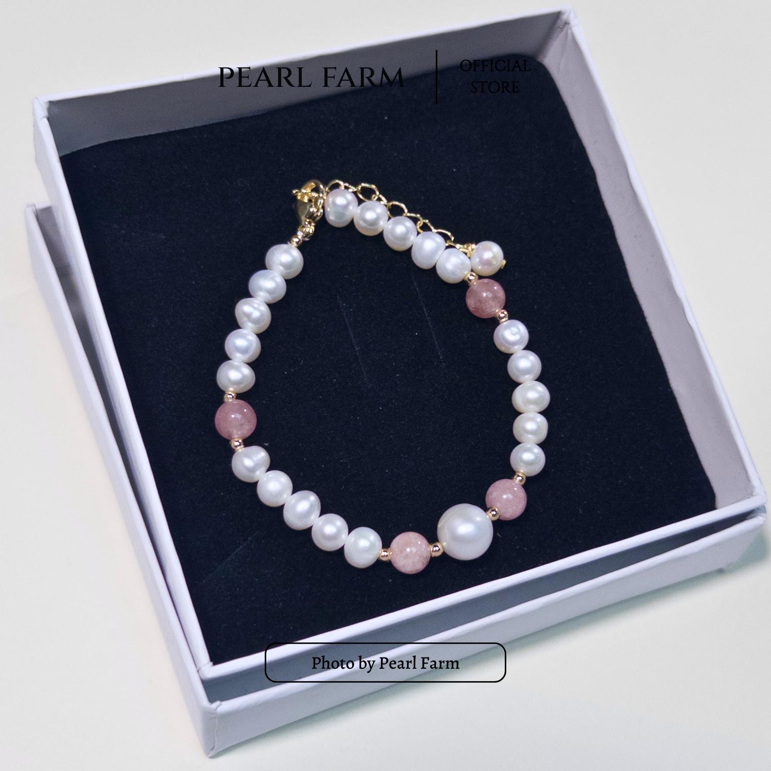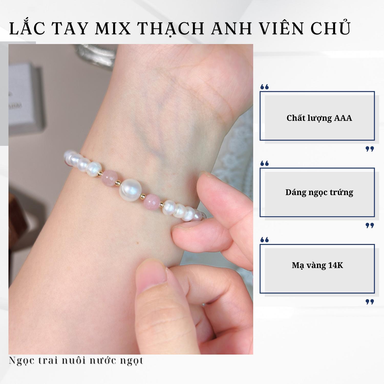 ✨ Tên Sản Phẩm: Lắc Tay Ngọc Trai Mix Đá Thạch Anh Hồng Viên Chủ 9mm Ngọc Oval Ít Tì